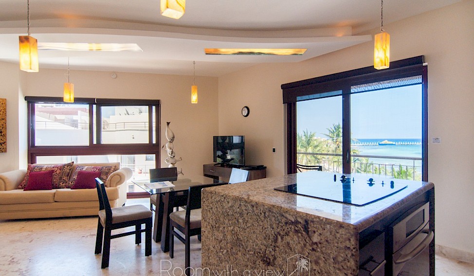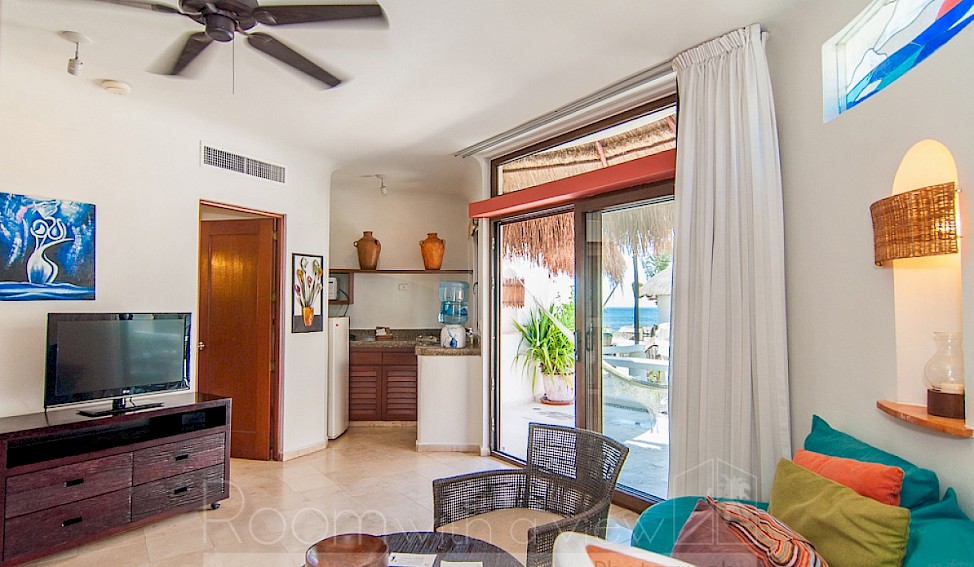 This delightful one-bedroom beachfront condo is located in the heart of old Playa del Carmen, just steps from the Cozumel ferry dock and 5th Avenue. It offers spectacular ocean views from the living room and expansive 180-degree beach views from the large front terrace. The interior features rustic furnishings and original beach-inspired décor. It is currently being used as a vacation rental and has a great rental history with an impressive 80-90% occupancy rate.