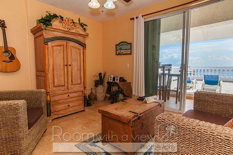This incredible one-bedroom oceanfront condo is located right in the heart of old Playa del Carmen, just minutes from the Cozumel ferry dock and 5th Avenue. It offers spectacular ocean views from the living room and expansive 180-degree views of the beach from the large front terrace. The interior features rustic furnishings and original beach-inspired décor.