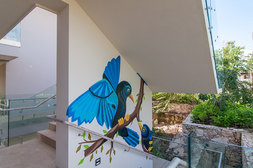 Designed to offer guests, “inspiring new experiences that will fully immerse them in the local culture during their stay,” Andaz Mayakoba's 214 open layout guestrooms feature artisan decor and are housed in 28 modern buildings that overlook the lagoons, the golf course, or the stunning Caribbean coastline. The property’s original design, including the geometry of the roofs and colorful murals by local graffiti artist Senkoe, is inspired by the more than 200 bird species found at Mayakoba.