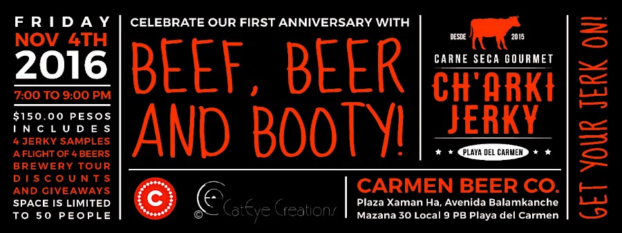 If you want to try Ch’arki Jerky for yourself, plus locally brewed beer, stop by Carmen Beer Co. on Friday, November 4 starting at 7 pm for the 1 year anniversary celebration! It’s only $150 pesos (that’s less than $10 bucks) and you get 4 jerky samples, a flight of beer samples, a brewery tour and more surprises. The perfect way to get to know two local Playa del Carmen businesses in one night!