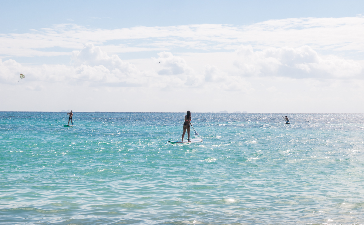 In the water, once the necessary explanations have been given, the instructors take the group to the sea. Adventure and fun begins! Outings to the water are not limited to paddling alone, there is also time for swimming, snorkeling on reefs, practicing some yoga poses and posing for the camera. 90 minutes of wholesome fun in the waters of the Caribbean Sea.