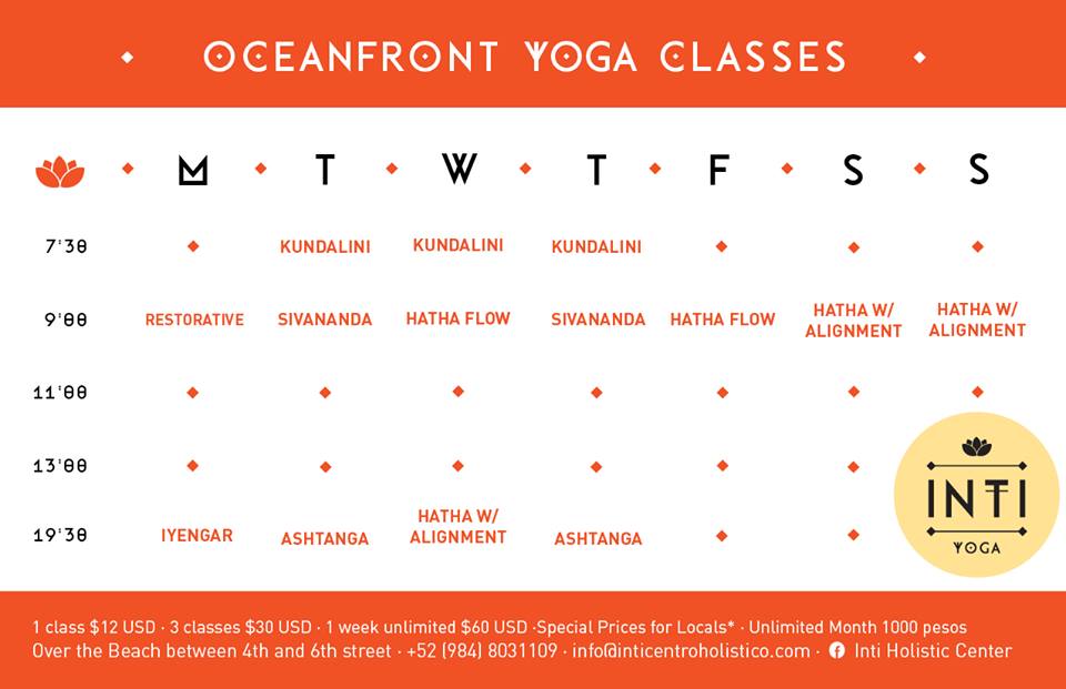 You can contact Inti Beach through their official facebook page to find out more about their different type of classes, schedules, instructors, and special events. Here is a glimpse of what their schedule looks like: