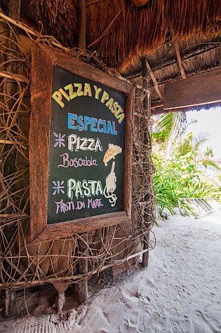 Beach and palm trees with a touch of jungle feel, that is the scenery of Mía Tulum. Under one same roof, you will find a cozy and trendy beach club with pool, a pizza garden, a dreamy beach layout for music lovers and of course, an exceptional beachfront restaurant with author’s cuisine called Mia, that uses art and creativity to enhance the taste and quality of the dishes prepared.