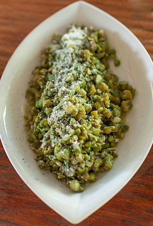 This was definetely a favorite at our table: The asparagus “risotto”: Slow cooked asparagus on a bed of vegetables and white wine, accompanied by cheese (vegetarian)