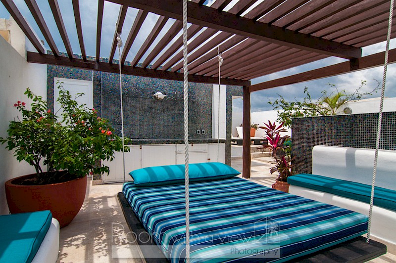 Set in the high-demand area between 5th Avenue and Mamita’s Beach, this gorgeous 2-bedroom penthouse condo is designed for indoor-outdoor living and a luxury lifestyle. The downstairs area has a well-equipped kitchen and a lovely balcony area, but the real star here is the extensive rooftop terrace with a hanging bed and sitting areas for true relaxation.
