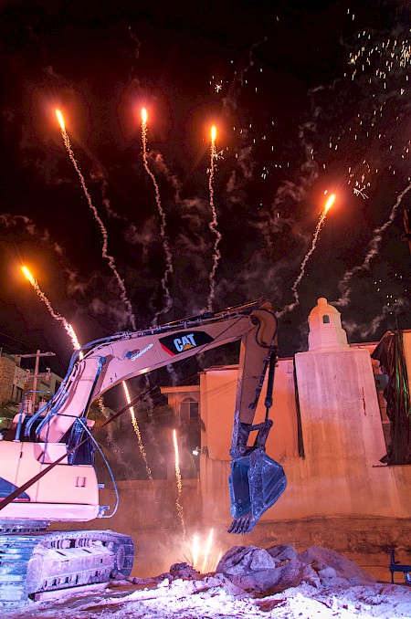 To cap off the evening, the entire real estate crowd looked on as our hosts unveiled the first stone for The Gallery Condos and placed it, with beautiful fireworks in the sky above the ground being broken.
