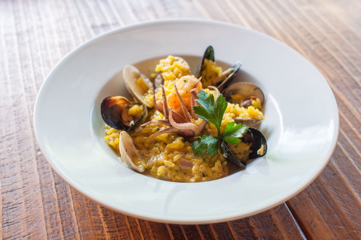 Risotto al Fruti di Mare: Saffron risotto with seasonal seafood (Also my favorite!)