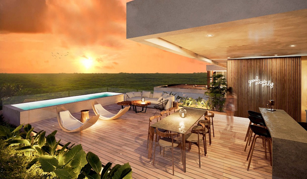 Owners and guests at Kaoba will be able to enjoy exclusive amenities such as a private beach, a roof garden with a pool, a gym and wellness center, a beach pool, a bar and more. The complex is safe and secure with gated entry and 24-hour security. It also has a hotel-like lobby and parking.