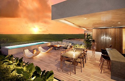 Owners and guests at Kaoba will be able to enjoy exclusive amenities such as a private beach, a roof garden with a pool, a gym and wellness center, a beach pool, a bar and more. The complex is safe and secure with gated entry and 24-hour security. It also has a hotel-like lobby and parking.