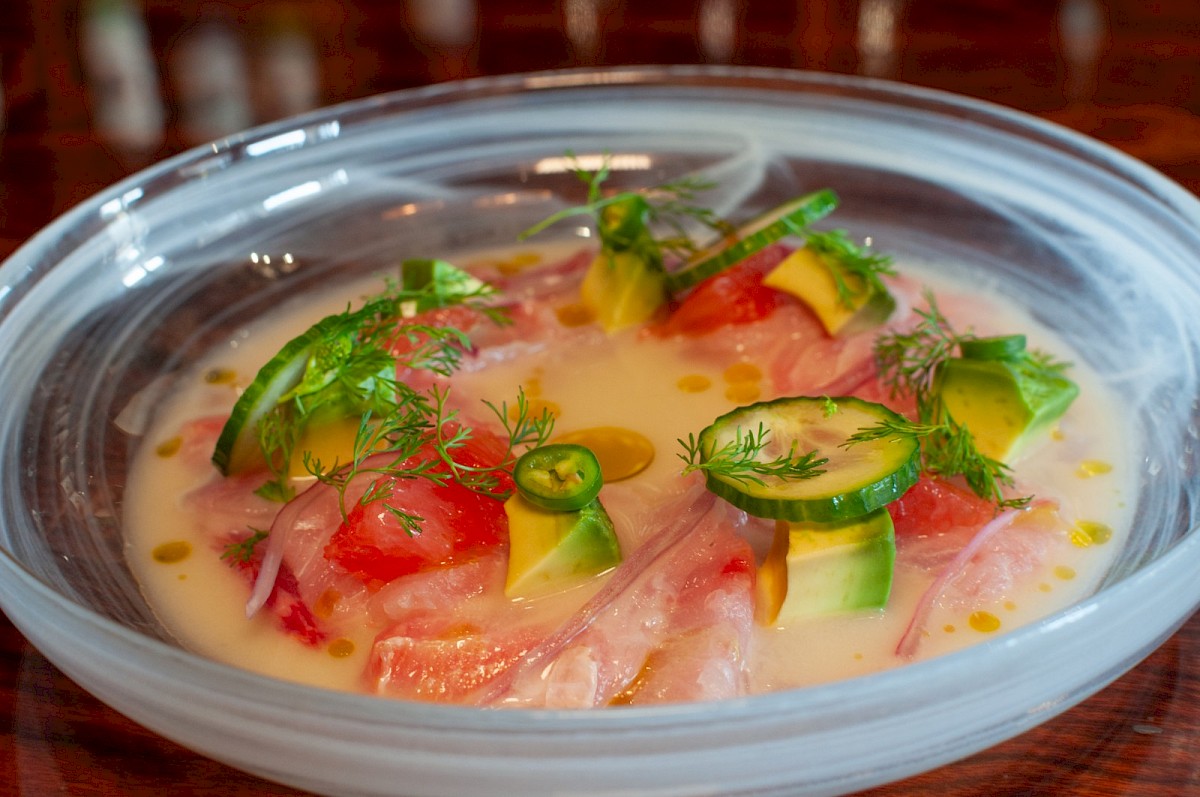 We began with a fish tiradito featuring yuzu sauce, avocado, Persian cucumber, red onion, grapefruit supreme, and cilantro oil. Fresh, bright, and beautifully balanced, it was the perfect way to start the experience.