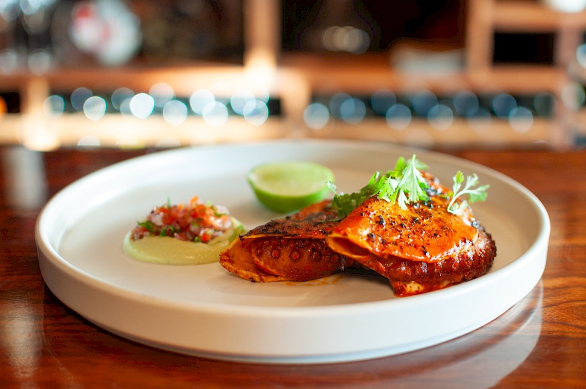 The seafood selection continued with a mixed black aguachile made with shrimp, octopus, and catch of the day, tossed in a roasted chili sauce and complemented by cucumber, red onion, and an avocado emulsion. Bold flavors and just the right amount of heat made this dish truly memorable.