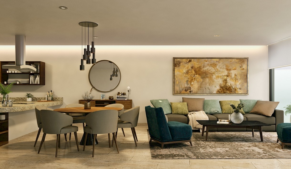 Estos amplios apartamentos están disponibles con un máximo de tres recámaras y cuatro baños, pero también hay diseños más pequeños. Cada unidad cuenta con sala y comedor abiertos, cocina moderna y terraza. La cocina y el lavadero están equipados con electrodomésticos para la vida cotidiana. Los acabados de madera y detalles como vestidores son hechos a la medida. Las grandes ventanas dejan pasar mucha luz solar, mientras capturan las frescas brisas del Caribe.