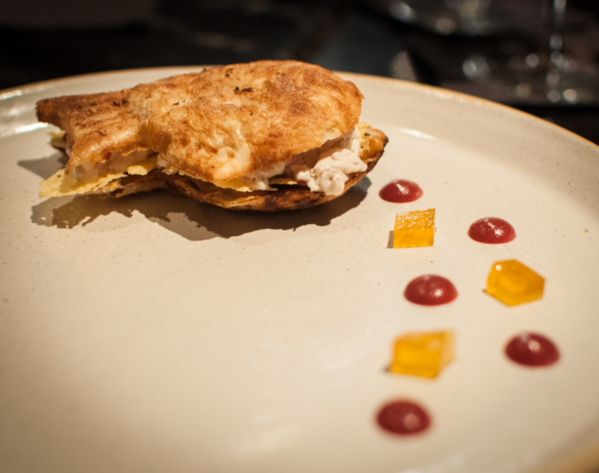 Taiyaki: Marquesita de hojaldre, paté de maracuyá, fruta, helado de temporada