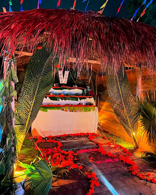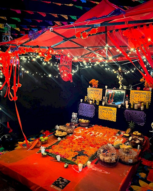 La festividad implica la creación de ofrendas o altares llenos de fotos, comida y recuerdos que representan a la persona a la que se homenajea. Calaveras de azúcar, flores de cempasúchil , velas e incienso llenan estos altares con elementos simbólicos destinados a guiar a los espíritus de regreso a casa para una breve reunión.