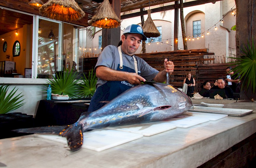 Bienvenidos a una aventura culinaria que trasciende lo ordinario, donde los sabores del océano se encuentran con el arte de reconocidos chefs con el telón de fondo de la pintoresca costa de Playa del Carmen. Recientemente, Atelier Koolinario nos invitó a participar en un fascinante evento de ronquidos de atún azul en Inti Beach . Organizado por el talentoso chef Antonio Moctezuma y acompañado por el chef invitado Luis Centeno , esta velada culinaria fue una celebración de la alta cocina, la creatividad y el sabor incomparable del atún azul. Acompañado de cócteles de mezcal elaborados por las hábiles manos de Benjamín Nava, la velada prometía un viaje gastronómico inolvidable.