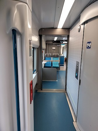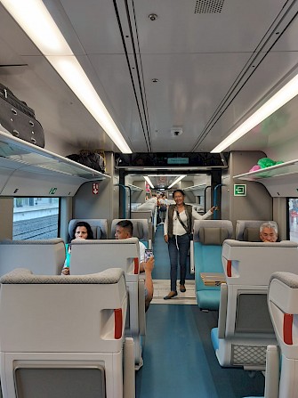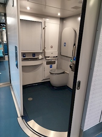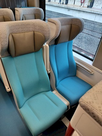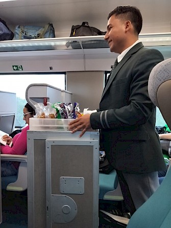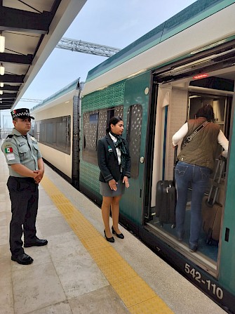 A bordo, el tren es una experiencia agradable. Los asientos son cómodos, el espacio es amplio y la mesa plegable puede soportar fácilmente una computadora portátil; hay un vagón bar que ofrece café, refrescos, cerveza, papas fritas y algunos productos horneados mexicanos envasados, sándwiches y similares. Los baños son limpios y modernos, con instalaciones espaciosas, incluido un baño para discapacitados muy bien diseñado que realmente parece ser fácil de maniobrar con una silla de ruedas (¡algo raro en muchos lugares de México!).