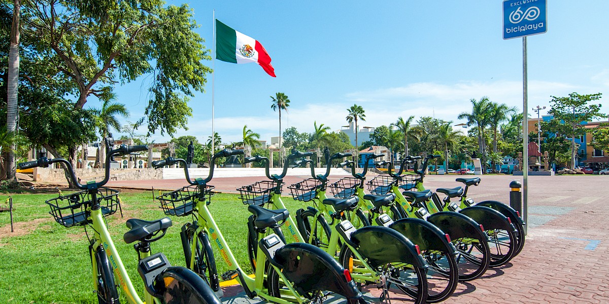 Local residents and tourists of Playa del Carmen will find 500 bikes displayed around town, in 44 bike stations. How to subscribe? You can download the app on your phone, follow all the steps and when you are ready, you go to the nearest bike station, you scan the the QR Code located on the bike, with your phone... et voilà! It unlocks the bike and you are ready for a 30 min ride. It is important to note that this service is offered to use more as a transportation than as leisure.