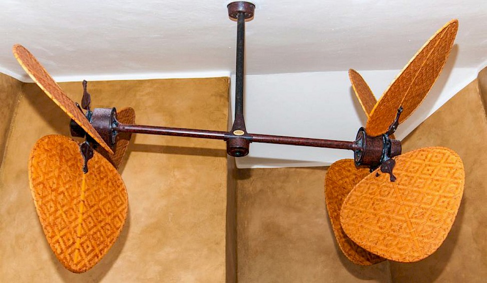 Textures, patterns, muted colors, and unique furnishings characterize this style of home décor. It can be both eye-catching and functional; the elegant Palisade fan in the upstairs guest room of this gorgeous oceanfront villa is much a work of Indonesian art as a tropical necessity.