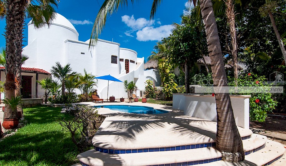 Designed in a Spanish hacienda style with ocean view terraces, a beautiful patio and pool area with tropical gardens and palms, and a spacious roof deck with a dome room, Casa Bella is one of the most eye-catching properties currently on the market in the Riviera Maya.