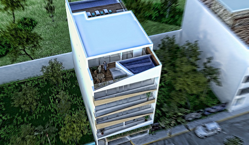 With a fantastic location right in the heart of Playa del Carmen's up-and-coming north side of downtown, these new ultra-modern studio condos are perfect as a vacation home or rental investment property. The building will have an elevator, parking, and a rooftop pool area with ocean views. Surrounded by shops and restaurants, and only a short 3-minute walk to the beach, you can’t beat the convenience this new residential condominium project has to offer!