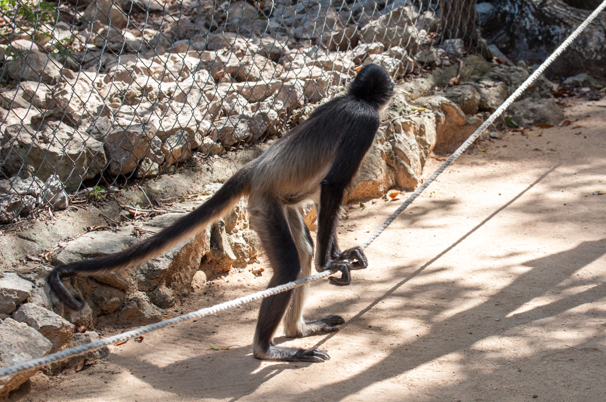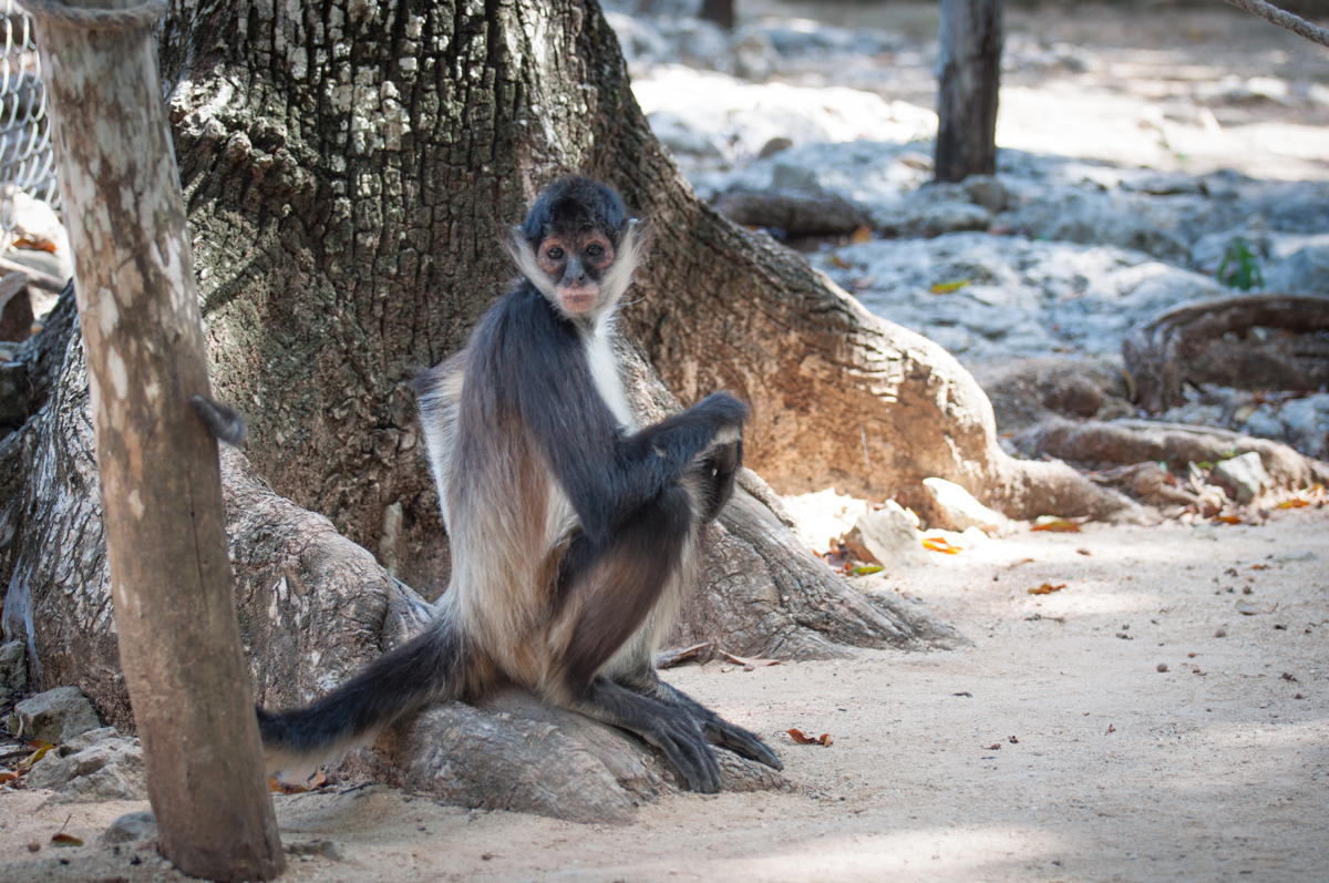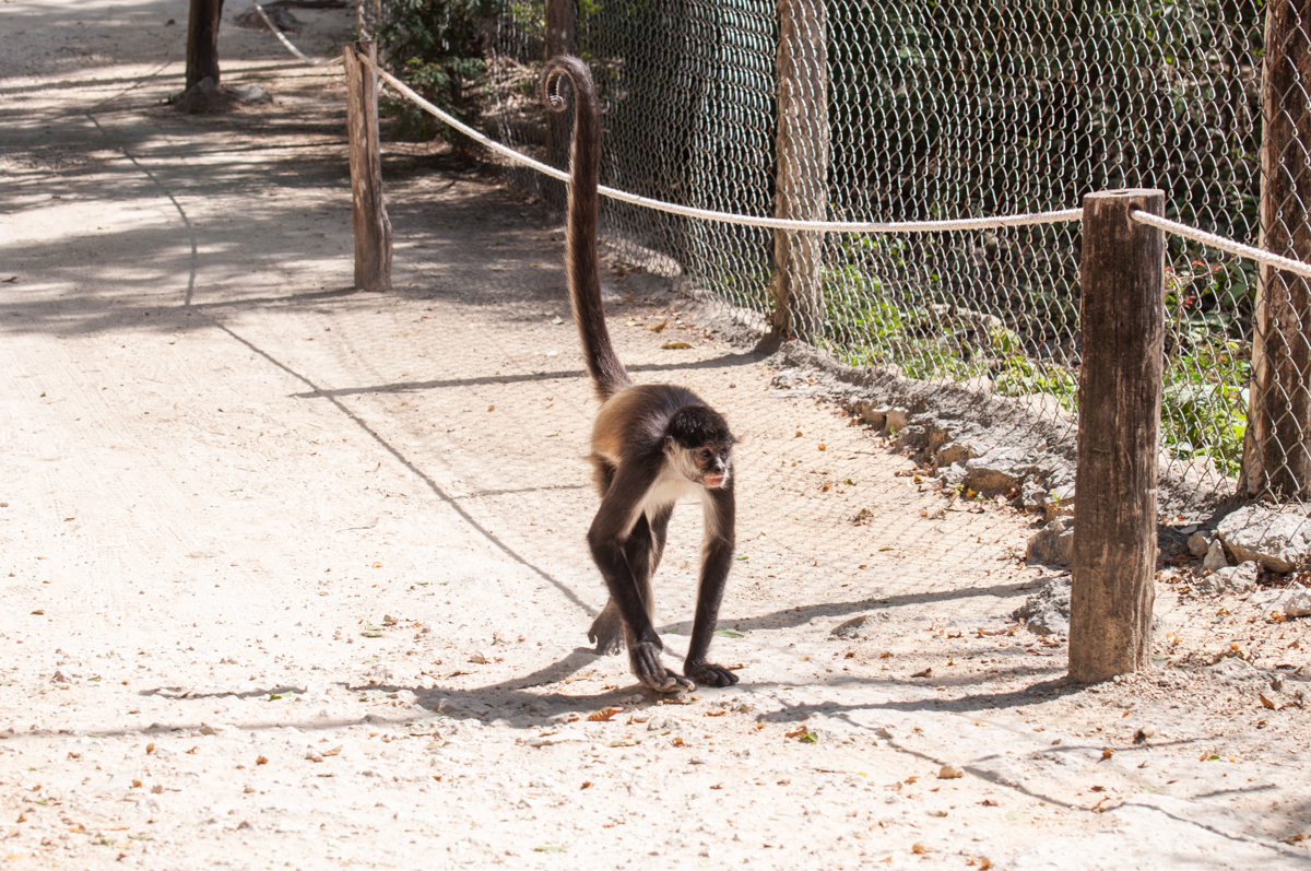 *Spider monkeys (as well as whitetail deers) walk freely around the park, even if some parts of the park appear to be fenced for them, it is more for a reproduction control. We saw many of them jump the fence and walk with us
