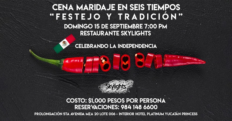 Skylights Restaurant at the Platinum Yucatan Princess is hosting a traditional Independence Day celebration complete with a delicious 6-course Mexican dinner and a traditional Mexican show. Local discount available.