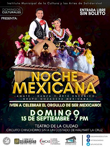 Enjoy an evening of traditional music and ballet folklorico with Gozadera Mexicana and Amaté Danza y Arte Escénico at the beautiful City Theater in Playa del Carmen. Doors open at 7pm and admission is free.