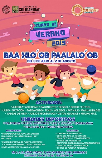 Sign the kids up for a variety of sports and fitness activities this summer at one of several Unidades Deportivas located around Playa del Carmen and the Riviera Maya. For more info or to register call (984) 147-3895 or visit the Instituto del Deporte Facebook page.