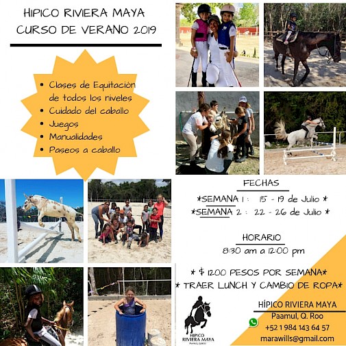 Boys and girls will spend their mornings at the Hipico Riviera Maya learning all about horses; how to feed and care for the animals and their tack. Riding instruction daily for beginning and intermediate riders. This is a wonderful opportunity to introduce your children to horses, animal care, stable maintenance and riding in a safe and fun environment under the supervision of experienced equestrians. For more info, call (984) 143-6457 or email marawills@gmail.com