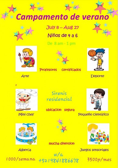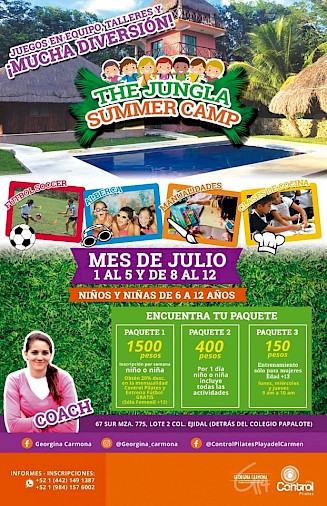 Kids ages 6 to 12 can enjoy daily soccer, swimming, arts and crafts, and cooking classes. For more info, contact Georgina Camona at (442) 149-1387 or visit the Control Pilates Playa del Carmen Facebook page.