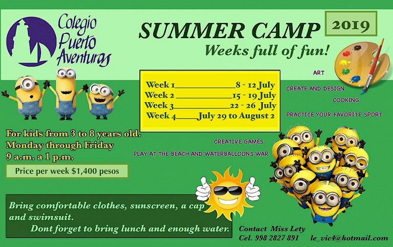 Colegio Puerto Aventuras offers arts and crafts, cooking, sports, games, and more for boys and girls, ages 3 and up. For more info, contact Miss Lety at (998) 282-7891 or email le_vic4@hotmail.com. You can also visit the Colegio Puerto Aventuras Facebook page.