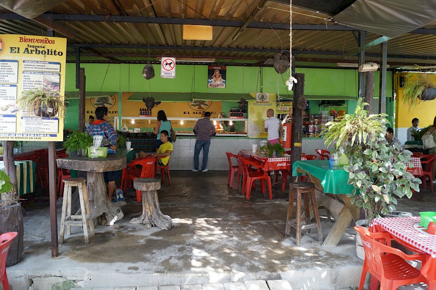 After a late start we headed to Highway 307 South which would take us to Chetumal (the Mexican city right before the Belizean border). Since we were in no rush we decided to go at a leisurely pace and enjoy the beautiful yet constantly changing scenery. We stopped at a taco stand called “Arbolitos” in Puerto Adventuras. They had a ton of variety and delicious choices at a very reasonable price.