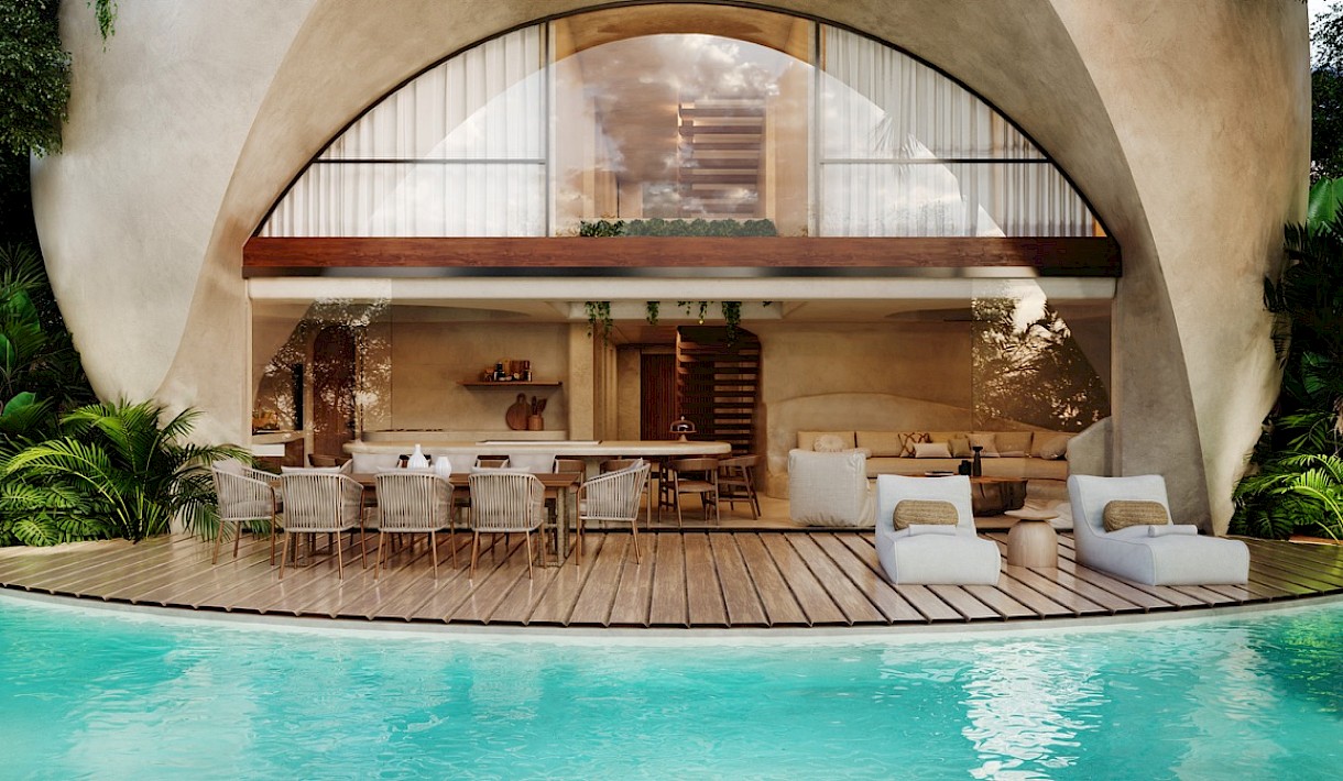 Set in the jungles of Tulum, Ahimsa is a new sustainably designed residential development in Selva Zama, a master-planned gated community in the premium area of Aldea Zama. The complex is located just minutes from the bohemian chic town center of Tulum and the new beach road that leads straight to the hotel zone and the gorgeous white sandy beaches. Nature lovers will adore the proximity to the ruins of Tulum, Coba, and dozens of amazing cenotes that are scattered throughout the Mayan jungle.